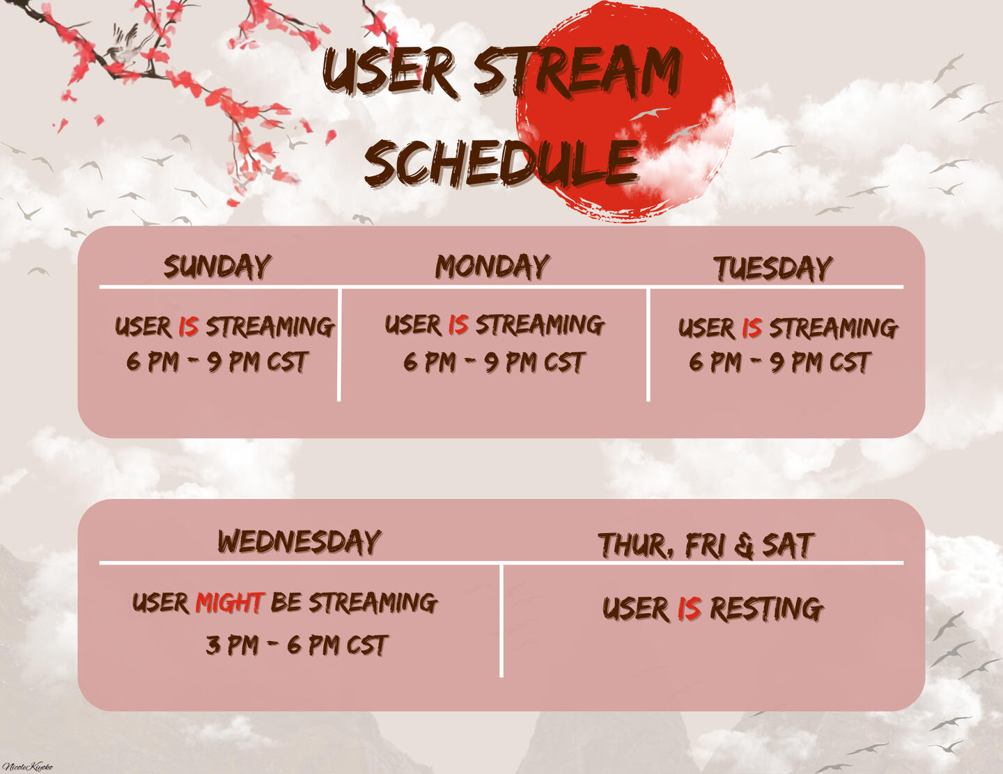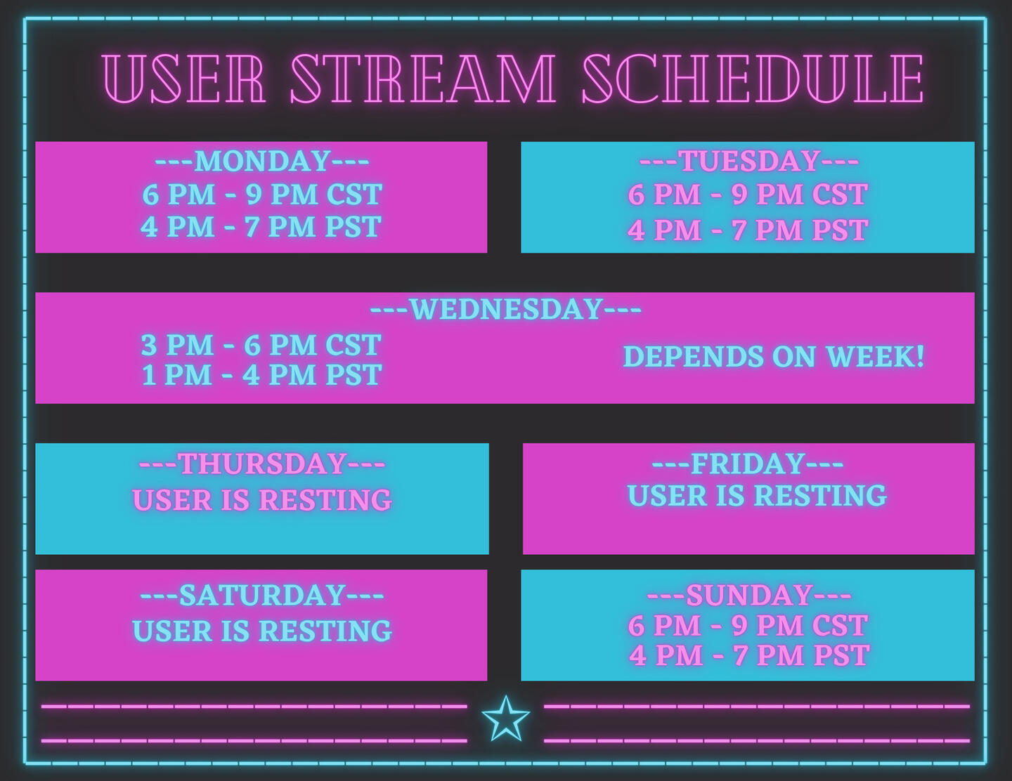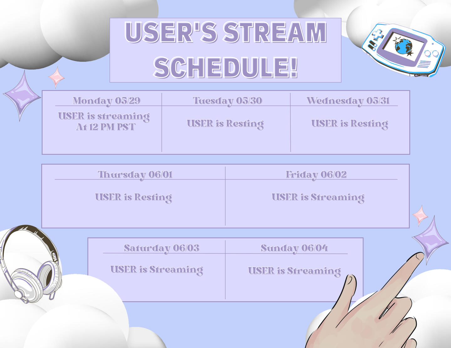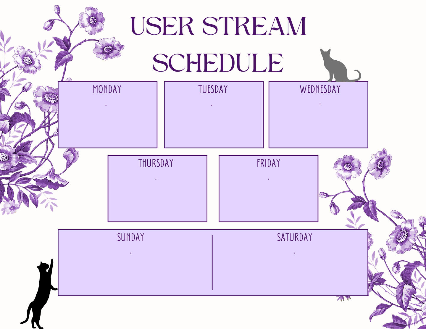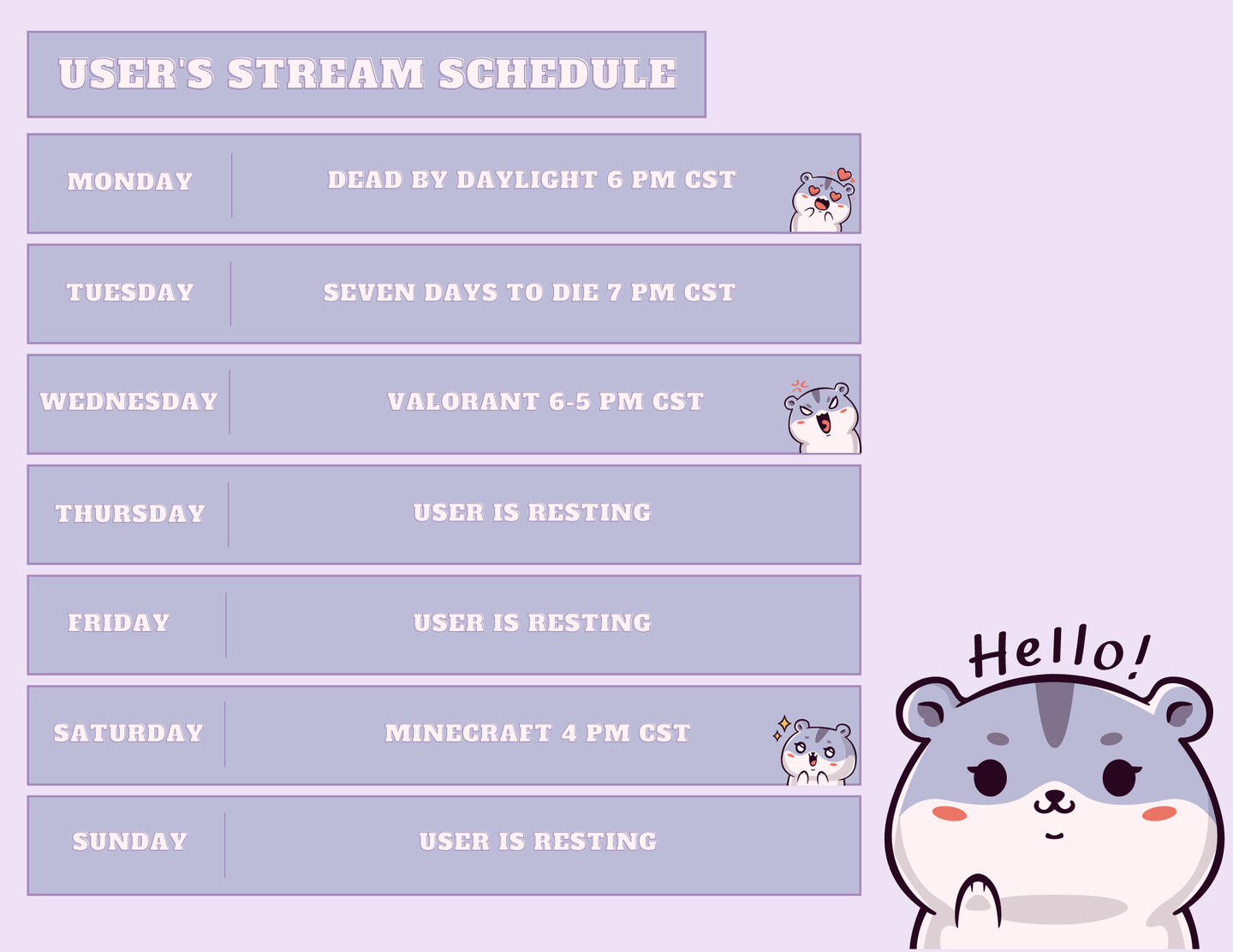 | I create a stream schedule for your liking. That will be customisable for you to change every week! |